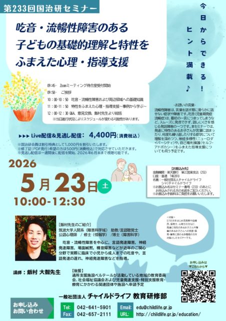★2026年度セミナー速報★第233回国治研セミナー吃音…